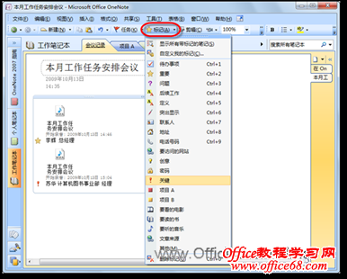 图3 增加新的录音记录 (4)重复“步骤3”,即可完成整个会议的录音与记录。 在整个录音过程中,用户可以随时手动添加文字记录,这样在会后,用户就可以根据文字记录,轻松找到对应的录音,进行录音整理与记录修正了。 另外,OneNote 2007还提供了“标记”功能,如果认为某发言人的讲话非常重要,只需单击“常用工具栏”中的【标记】按钮,这时,表示“重要”的小星星就会出现在该段文字的前面,而单击【标记】按钮右侧的下三角按钮,在随即打开的下拉列表中,还可以选择其他标志,如图4所示。