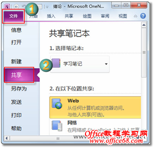 时代在进步,生活水平在提高,手机已经成为人们生活中必不可少的工具。小刘是一名极具现代思想的大学生,平时总是手机不离手,他最近又有一个新发现,就是将个人计算机中的OneNote笔记本与手机同步,从而使自己能够随时随地查阅课堂笔记。 在SkyDrive中共享笔记本 在以前,如若要实现个人计算机中的笔记本与手机同步的话,可能需要借助同步工具,如“ActiveSync”来完成,而现在,Office 2010与SkyDrive的无缝结合,使得这一工作变得更加简单。 1. 使用OneNote 2010打开需要进行同步的电子笔记本后,单击“文件”选项卡,打开后台视图。 2. 切换到“共享”视图中,如图1所示。