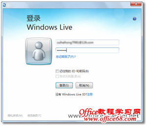 图2 设定共享笔记 4. 在随即打开的登录窗口中,输入已经注册的Windows live ID和密码,进行登录,如图3所示。