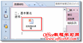 3. 此时,在OneNote笔记本中的当前页中即可看到刚刚插入的课件附件,它显示为应用程序图标和文件名,如3所示。