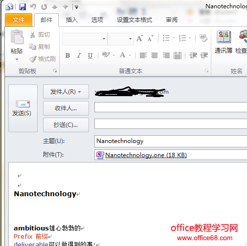 它将打开Outlook撰写邮件窗口,笔记作为附件。笔记的内容可以在邮件撰写窗口的编辑窗口中看到。