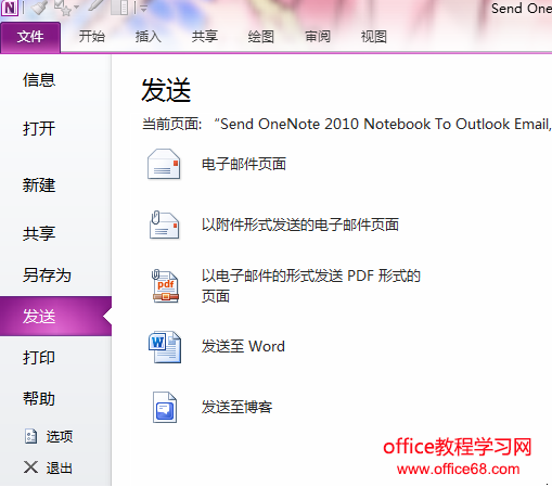 然后到文件菜单,并点击发送。这时候你会看见很多的选项来发送笔记。点击“以附件形式发送的电子邮件页面”。