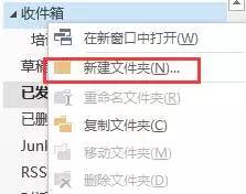 在导航窗格中的“收件箱”上右键,选择“新建文件夹”,就会在收件箱的下方创建一个新的子文件夹,可以命名新的文件夹。如下图所示: