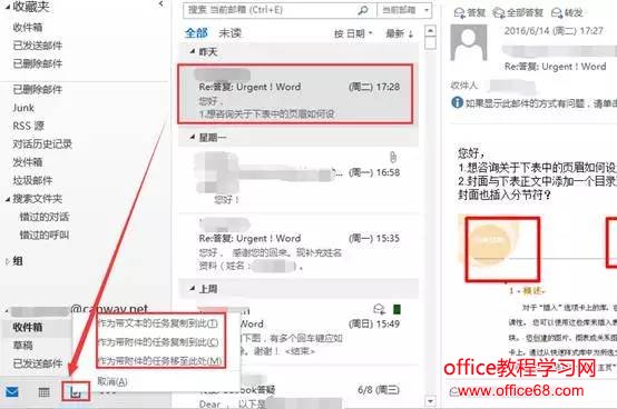 我们以将电子邮件转换成任务为例,来介绍一下具体的操作步骤: