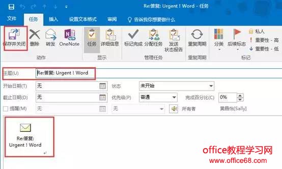 4.    Outlook会打开新的任务窗体,并自动使用该邮件的主题。我们只需再添加上截止日期,必要时可以还定义一条提醒,即可完成该任务项的设置。