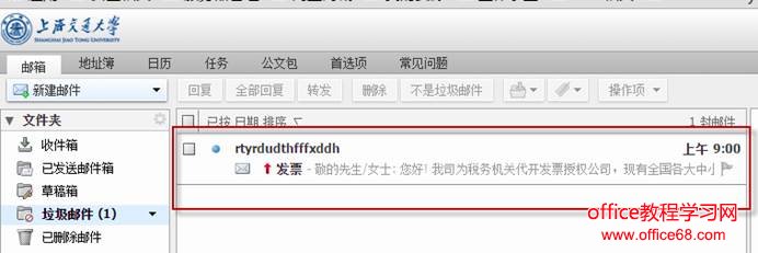 过滤器设置完成后,过段时间,可以观察下效果。 匹配的邮件,是否被分拣到“垃圾邮件箱”,如下图。