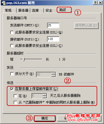 ·单击“高级”选项卡,然后选定“在服务器上保留邮件副本”。