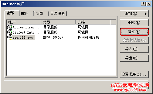 ·选择要设置的邮箱帐户,然后单击“属性”;