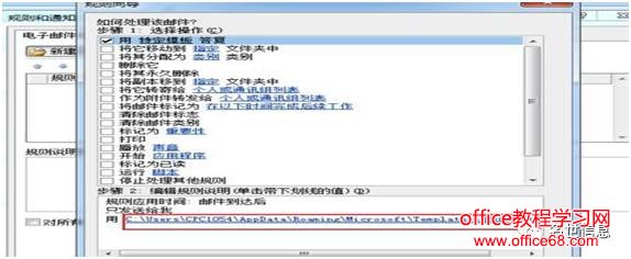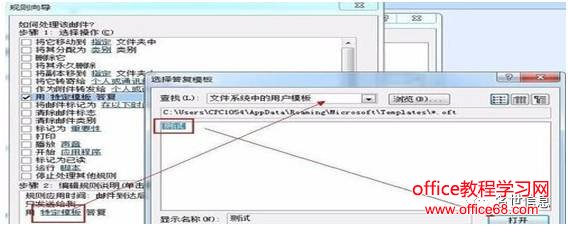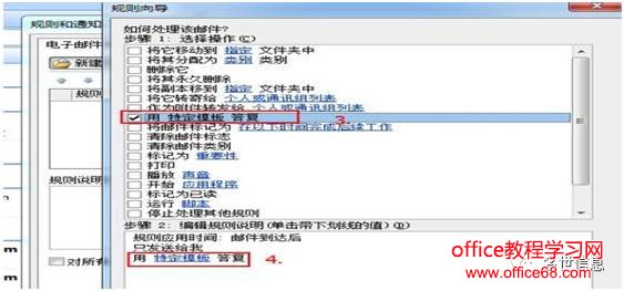 7、规则内容: 邮件到达时检查-->只发送给我--->用特定模板答复--->选择模板