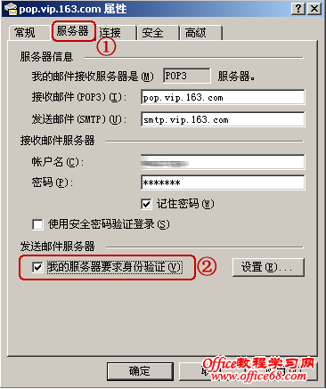 解决方法如下: ![]() · 在左侧列表选中您的邮箱帐号,点击右侧的“属性”; ![]() · 选择“服务器”标签,然后勾选“我的服务器要求身份验证”,并点击右边“设置”标签,选中“使用与接收邮件服务器相同的设置”确定即可。 ![]() |