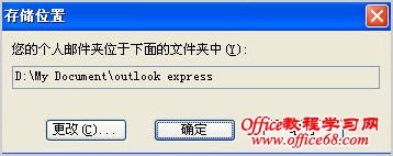 点击“存储文件夹”,能看到邮件文件夹存储的目录:您会在弹出的对话框中看到:D:\\My Document\\outlook express,系统默认的是在C:盘。