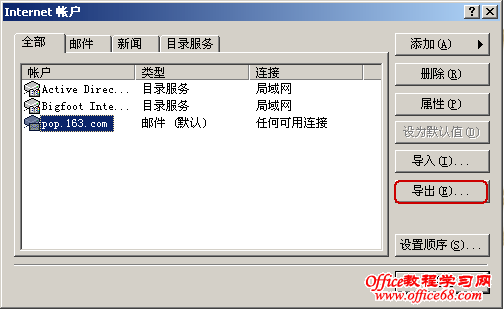 首先打开Outlook Express ,点击“工具”,点击“帐户”,点击“邮件”选中已经建立好的帐号,点击“导出”;