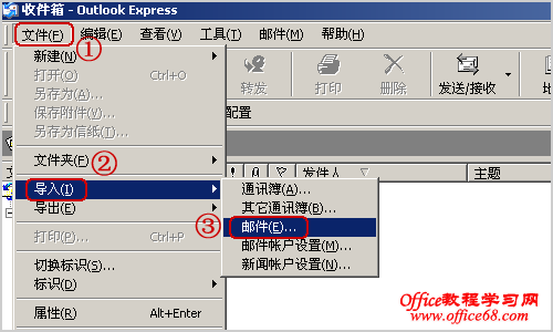 打开OUTLOOK EXPRESS——文件——导入:选择“邮件”;