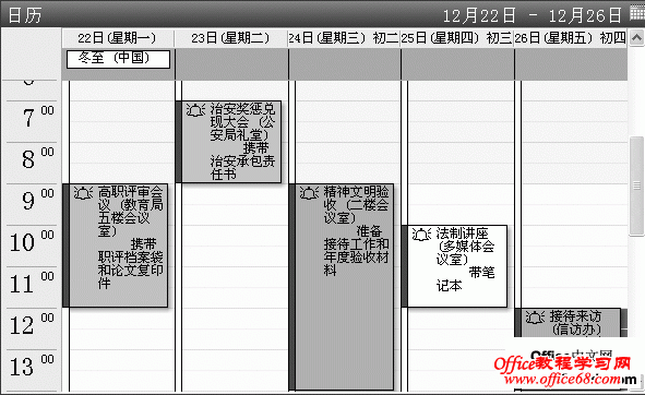 按照上述方法,就可以在12月22日至26日的日历中建立相关会议和活动的日程(图5)了。
