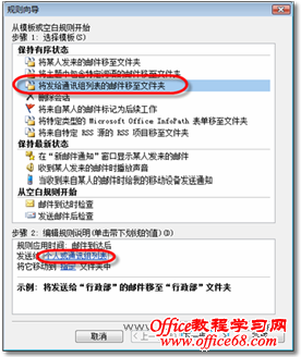 图2 单击【新建规则】按钮 (3)随即打开“规则向导”对话框,在“步骤1:选择模板”选项区域中,选择“将发给通讯组列表的邮件移至文件夹”,在“步骤2:编辑规则说明(单击带下划线的值)”选项区域中单击【个人或通讯组列表】超链接,如图3所示。