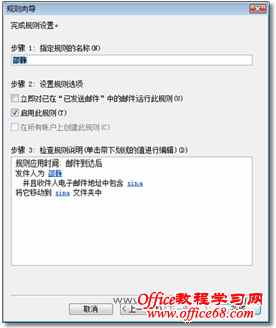 图7 设置完毕 用同样的方法,我们还可以将其他发件人发出的邮件存放在指定的收件箱文件夹中,如此一来,便实现了邮件信息的自动分类。 |
