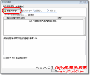 图1 执行【工具】|【规则和通知】命令 (2)在随即打开的“规则和通知”对话框中,单击【新建规则】按钮,如图2所示。