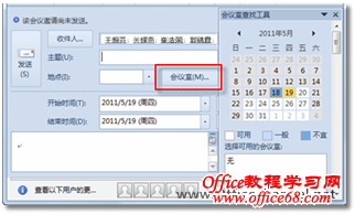 1. 在新建的小组会议窗口中,单击“地点”文本框后的【会议室】按钮,如4所示。