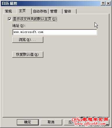 如果用户经常需要访问某个网站,就可以将其指定为某Outlook文件夹的主页,从而方便地在Outlook中访问该网站。 用户可以为该站点创建一个新文件夹,或者为现有的文件夹指定一个主页。 ![]() 然后在弹出对话框中使用"主页"选项卡。在地址框中键入希望作为该文件夹主页的Web页的地址,或者点击"浏览"从列表中进行选择。如果希望每次点击该文件夹时都能看到该Web页,则选中"显示该文件夹的默认主页"选框。如图 ![]() 现在,当用户选择该文件夹时,该Web页的内容将提前显示在Outlook窗口中。 |