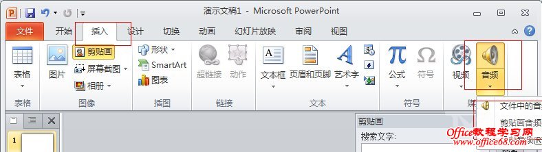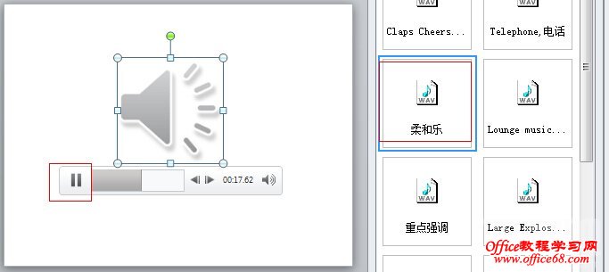 当然你也可以使用ppt自带的剪贴画音频,点击柔和乐,就可以添加到ppt了.