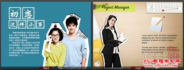 左图:泰国电影《初恋这件小事》,蛮温馨和纯情,虽然有些不切实际的浪漫。简单的裁剪了下男女主角,配以杂乱的感悟,效果还不错吧。 3、电影胶片 电影胶片的处理啊效果,看起来就比较不错。适合展示一些“事物背景“、“项目展示 ”等。 presentationload、slideshop上会提供一些类似电影胶片的效果,大多都是可编辑的,可根据图片的数量自行手动调节。
