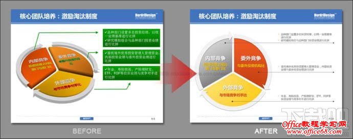 今天给大家带来的是“学会删除图示中不必要的视觉效果”,常规PPT制作中,我们通常强调简洁的画面,直观的信息,明确的关系图示,但为了使页面内的元素看上去不那么单调,我们往往会加入一些颜色和效果来丰富页面,而使用不当,往往却会适得其反、画蛇添足。 实际案例: