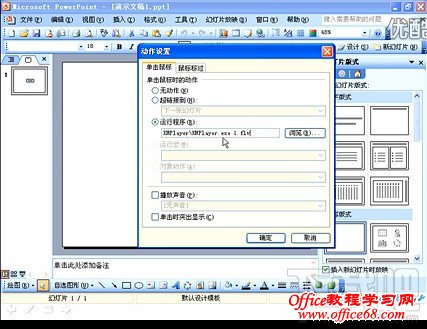 2、新建一个块,或者选择一个,右键,选择动作设置,选择运行程序 3、放上你的播放器的路径 并且空一格,后面放上视频文件的完整名称就可以了