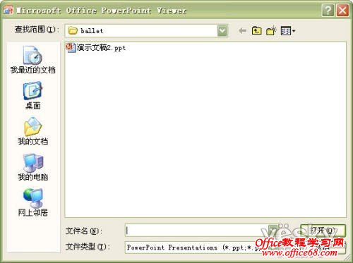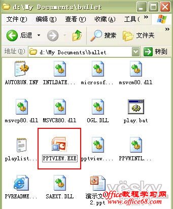 双击其中的PPTVIEW.EXE文件,启动演示文稿查看器,选中需要放映的演示文稿,即可进入演示放映状态。