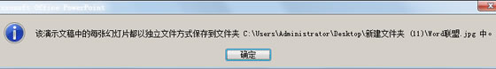 ④转换完成会出现提示“该演示文稿中的每张幻灯片都以独立文件方式保存到文件夹....”,打开该路径即可找到所有转换过来的图片。