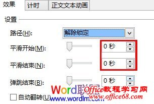 对于3个路径动画,注意(1)平滑开始平滑结束均设置为0,(2)第2个路径较短,但时间反而长些,这就造成变速上升了,(3)时间设置上,利用“延迟”设置来使三个路径逐一运行,因为下面的陀螺旋动画要横跨三个路径的时间,所以不能用“上一动画之后”