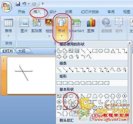 图2 PowerPoint 2007插入基本形状 办公软件教程