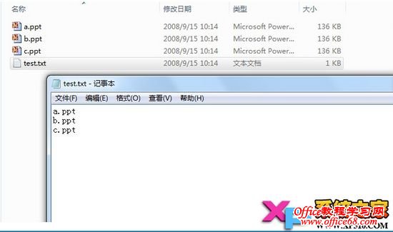 然后输入如下命令,将要合并的PPT文件名存放到文本文件中。