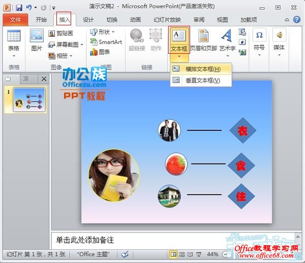 11 然后是标题的制作,点击菜单栏--插入--文本框。