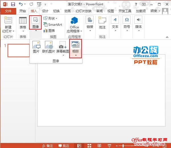 1 启动PowerPoint2013,单击菜单栏--插入--图像--相册。