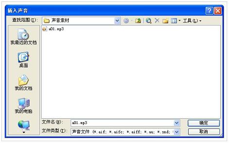 注意:演示文稿支持mp3、wma、wav、mid 等格式声音文件。