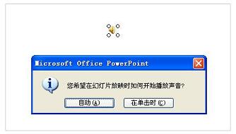 3、在随后弹出的对话框中,根据需要选择“自动”或“单击时”,即可将声音文件插入到当前幻灯片中。