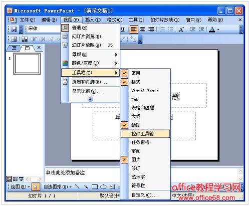 1、执行“视图→工具栏→控件工具箱” 命令,展开“ 控件工具箱” 工具栏。