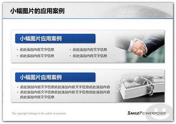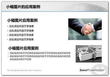因为受到图片精度的限制,小图的可用性被限制了很多。一般我们采取常规的排列方式,详细介绍见《PPT设计之图文排列与布局》。