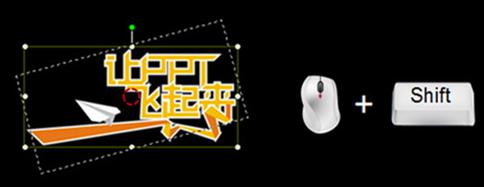 在PowerPoint 2003/2007/2010版本中,旋转时,按住Shift键,可以让图形旋转时按15°的角度旋转,这对于一些固定角度的旋转可是大有帮助的。