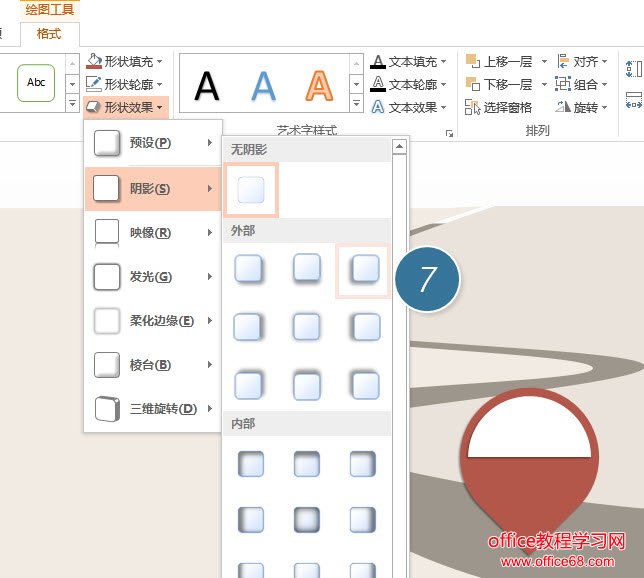 (10)接着选中两个图形,并设置阴影效果。应用如图10所示处的阴影效果。