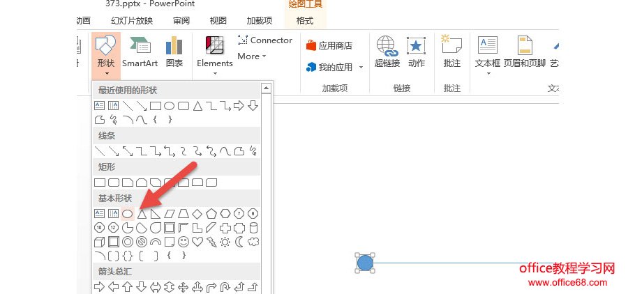 按住Shift键,插入一个圆形,缩小后置于直线的起始位置。