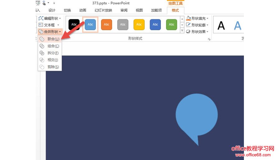 选中圆形和三角形,点击“合并形状—联合”按钮,将其组合成一个图形。