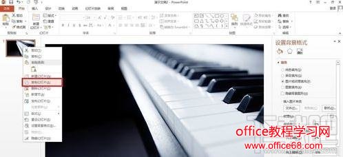 选择此背景图片,右键复制幻灯片,就背景就可以批量使用了。