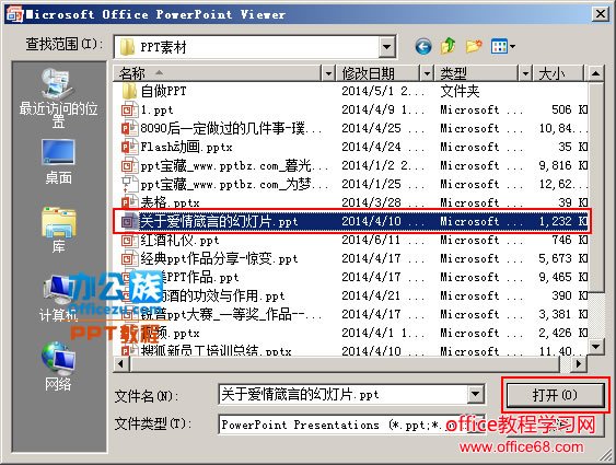 安装完PPT阅读器后,我们可以在“开始”菜单的“所有程序”中找到这款软件,实在不行也可以利用搜索程序的方法将其搜出,然后运行这个程序,只需要找到我们想打开的PPT文件,单击“打开”按钮即可开始阅读PPT文件。