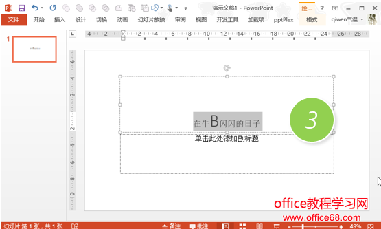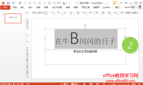 PPT设置字体大小的时候,有时候实在不知道设置多大合适,有没有什么方法可以连续的缩放字体大小,方便了解当前字体多大合适? 解答:恩!利用快捷键直接搞定。 具体方法如下:新建幻灯片,写入文字,并选中文字(下图1处)