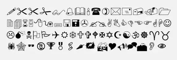 ![]() (2)然后点击【插入】-【符号】-【符号】,打开“符号”对话框,在“字体”栏中输入“Webdings”或者选择“Windings”“Winding 2”,此时我们就可以找到很多图标了。