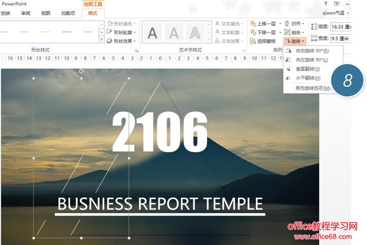 第六步,利用文本框加上标题。标题2016字体用了IMPACT 字体(系统自带),字号大小150磅。下面的字体就是微软雅黑48磅。然后在画一条白色的长条图形在底部就行。(如下图 6 所示)