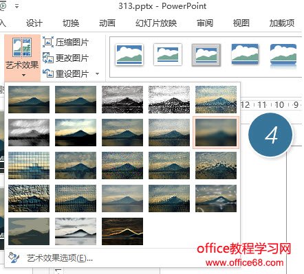接下来将三角形图片复制到前一页的图片上。然后在“艺术效果-模糊”模板下图区域。效果如下图 4 。(下图 4 处)