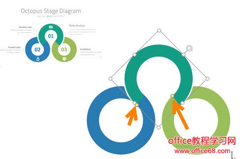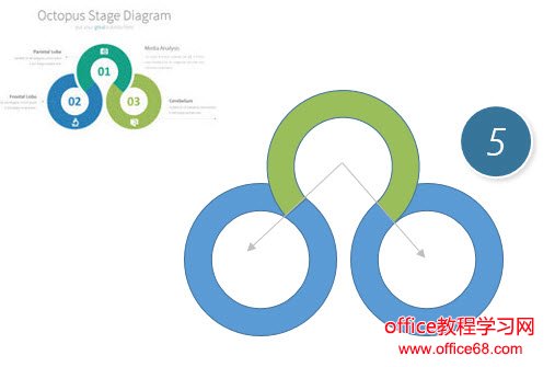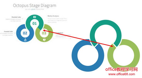 总结:又一个典型的图形组合的案例,大家可以在这图形组合的基础上发挥自己的创意,玩出更有助于PPT核心思想表达的图形。这需要的注意的是如果利用弧形(下图 8 处)工具,可以直接做出不需要遮挡轮廓的方法,这里提示如下: