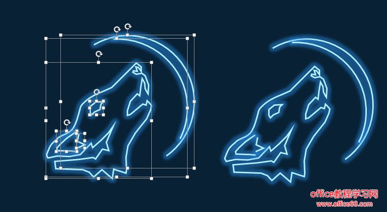 总结:线条发光可以理解成霓虹灯,PPT有两种方式一种是图形线条的图形效果,一种是字母字体的文字效果。记住对象不同,按钮的位置不同哟。 |